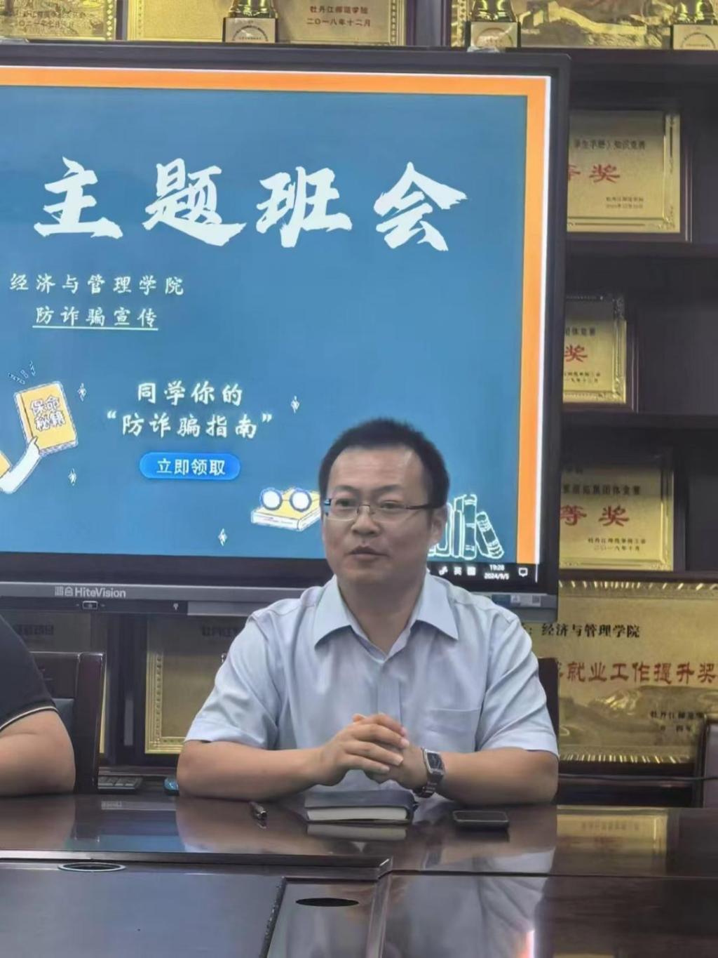 班会现场,气氛紧张而专注。大屏幕上滚动播放着各类诈骗案例的视频,那些真实发生的故事让同学们深刻认识到诈骗的无处不在和严重危害。王俊珲老师深入剖析了常见的诈骗手段,如网络诈骗中的虚假购物、网络贷款骗局;电话诈骗里的假冒公检法诈骗、中奖诈骗套路等。老师用生动的语言和具体的案例,为同学们揭开了诈骗分子的神秘面纱。