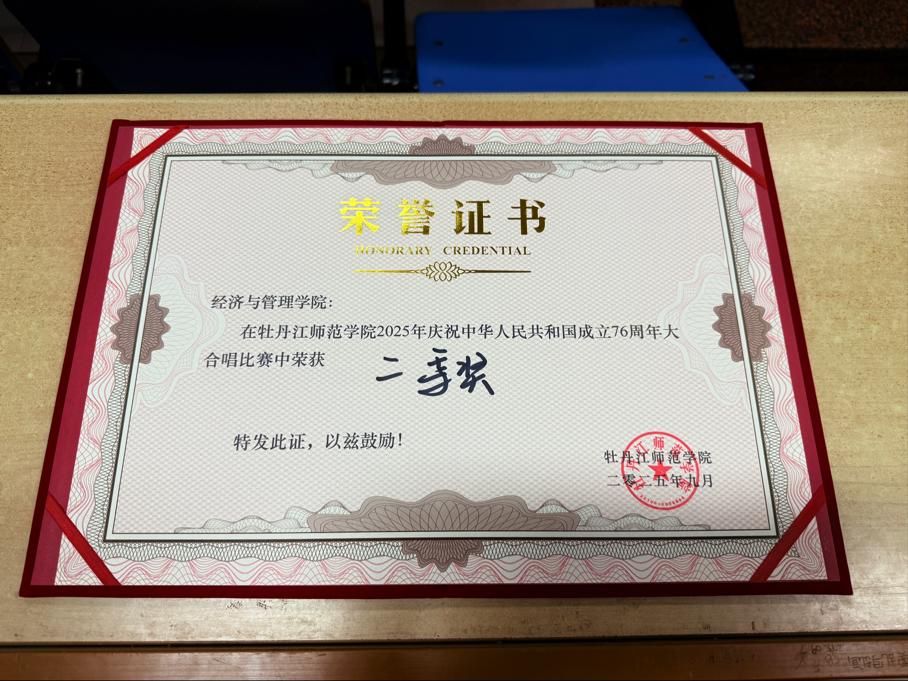 当同学们昂首挺胸踏上表演的场地,每一个旋律都饱含着同学们对祖国的赤诚,每一个神情都传递着他们对祖国的敬爱。他们身姿挺拔,神情专注,先以《神圣的使命》唱出青年学子的责任与担当,歌声铿锵有力,满含对祖国发展的坚定信念;随后《在灿烂的阳光下》的旋律缓缓流淌,温柔的唱腔里满是对祖国繁荣景象的赞美。伴舞同学的身影穿梭其间,每一次轻盈跳跃、每一个舒展动作,都将歌曲中的情感具象化。最终,凭借扎实的演唱功底与饱满的情感表达,团队成功斩获比赛二等奖。