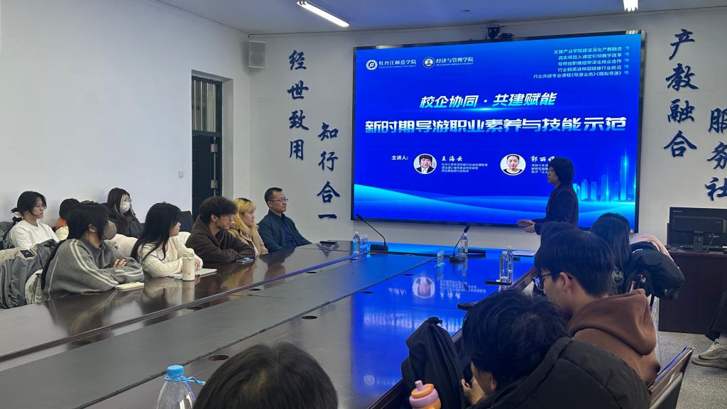 为深化产教融合、创新人才培养模式,推进高质量人才培养,云顶国际依托文旅产业学院建设,邀请合作单位黑龙江青旅集团的两位资深专家入校培训,通过地方行企专家入校引入真实项目引领教学改革,同时借力导师挂职纽带强化校企合作,紧密链接行业前沿。培训活动于11月24日下午在学院多功能室成功举办,培训主题为“校企协同·共建赋能——新时期导游职业素养与技能示范”。同时本次活动也是学院持续推进行企共建《导游业务》《模拟导游》等专业课程的一次重要举措。云顶国际经理路科教授出席并主持活动,旅游管理专业员工到场聆听。