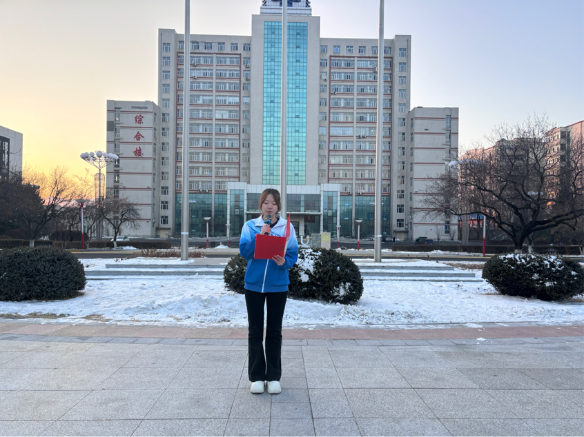国旗之下,初心如磐。升旗仪式后,2025级员工代表曹蒙同学发表了国旗下的讲话。她回顾了“一二·九”运动中爱国青年为民族危亡挺身而出的壮阔历程,结合新时代青年的使命担当,号召全体经管学子铭记历史、不忘来路,将爱国情、强国志、报国行融入日常学习与实践,以过硬的专业本领和昂扬的精神风貌,回应时代召唤、勇担青春责任。
